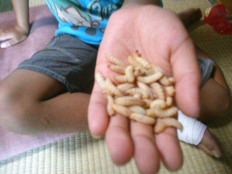 それにしても、これ何?ブドウ虫?これは私も無理無理^^;畳の上に落とさないでね、P君