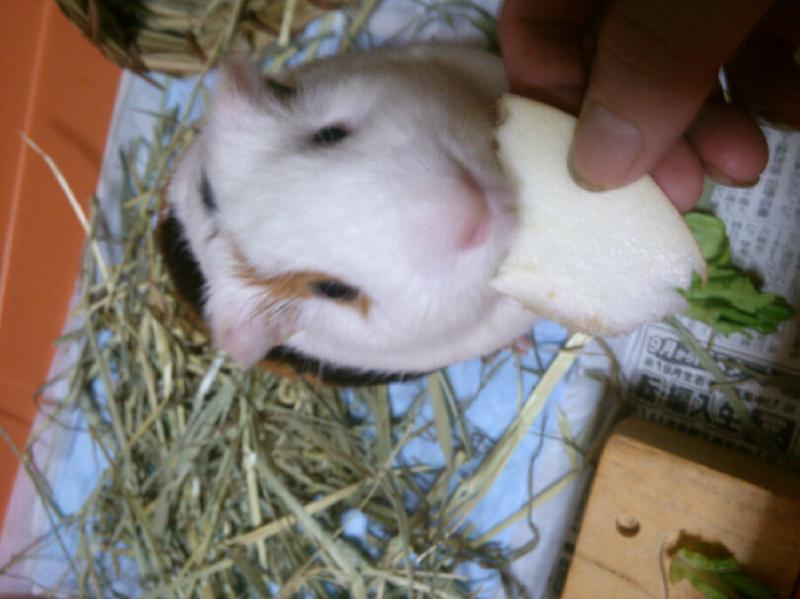 スイカや桃なんて、首元だらだらにして、一生懸命食べてます!