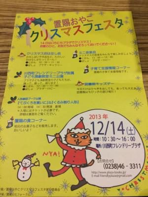 今週の土曜日、12月14日ですが、川西町のフレンドリープラザで、置賜親子☆クリスマスフェスタ!!のイベントがあります♪