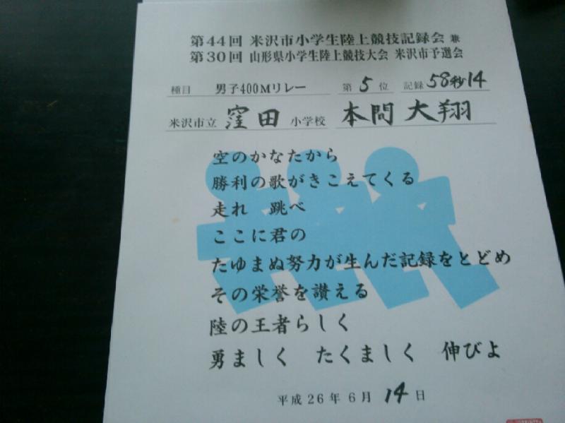 「おぉ〜すごいじゃん!」と言うと、「俺は、リレーの賞状1位のやつが欲しかった