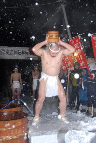 1月8日(日) 午後6時〜尾花沢市延沢 愛宕神社にて雪深い尾花沢市ですが 今年も 裸参り参加者大募集ですきっと素晴らしき1年となりますよ お浄めの水を浴び・愛宕神社参拝・餅つき を体験 15歳以上で健康な方  ◆問い合わせ先/愛宕神社奉納裸参拝実行委員会   実行委員長 豊島 幸一 0237-28-3136