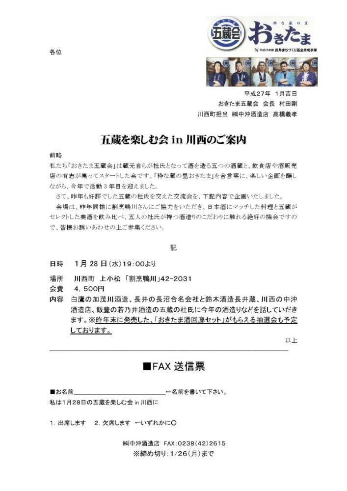 ●今年もやります!おきたま五蔵会主催「五蔵を楽しむ会in川西」