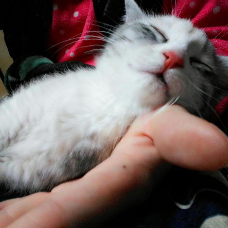 お姉ちゃんのひざで爆睡にこちゃん!気持ちよさそうな顔(*´?`*)?