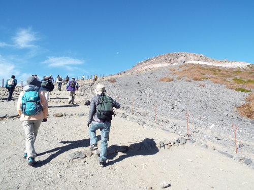 那須岳紅葉ハイキング、二日目は風もおさまったのでロープウェイを利用して主峰の茶臼岳へ向かいました。詳しくは「やろこのHP」の「山だらけ」をご覧下さい。