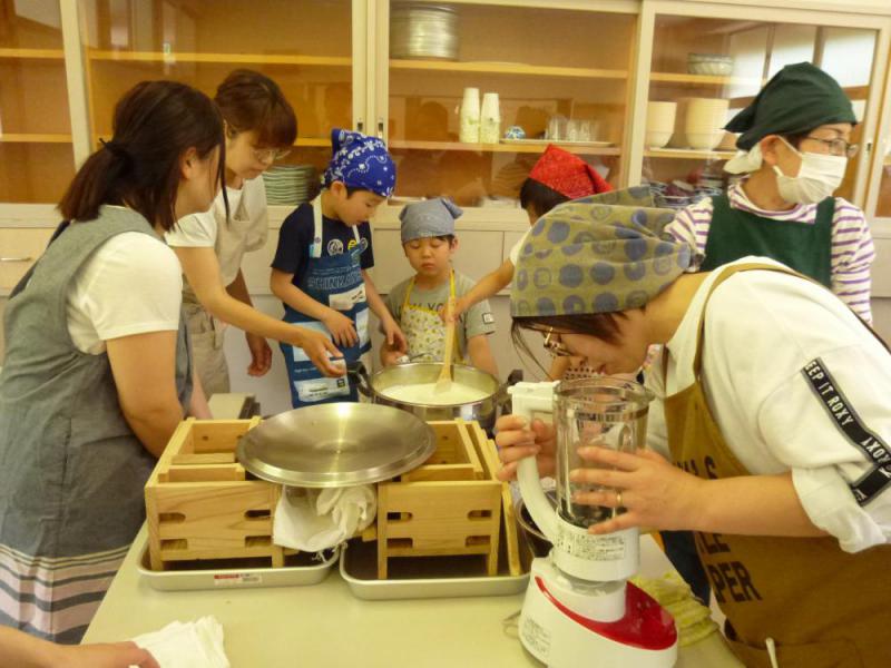 豆腐づくり体験田代では旧正月に豆腐田楽を食べる習慣があり、昔は各家庭で豆腐を作っていたそうです。そんな昔ながらの伝統を体験プログラムとして再現してみました。田代のお母さんたちが作り方を教えてくれるので、初めての方でもおいしい豆腐を作ることができます。濃厚な味わいの手作り豆腐、皆さんも一度味わってみませんか。■開催時期:通年■当日の流れ:@豆腐作りの説明(5分)       A豆腐作り 型に流し込むまで(60分)             固まるまで(30分)       B洗い物等(20分)■通常料金:1セット6,000円(4人程度が適当)■最小予約人数:2名様■最大予約人数:30名様程度■所要時間:約120分■開始時間:相談に応じます■予約期限:実施日の1週間前■キャンセル料:前日50%、当日100%■持ち物:エプロン、三角巾