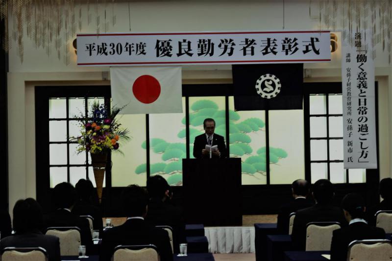 11月14日(水)、ホテルシンフォニー本館にて、優良勤労者表彰式が行われました。寒河江市商工会々員事業所の14事業所25名が推薦され見事表彰を受けられました。安藤商工会長より、「今後とも、本日の栄誉ある受賞をきっかけに、企業の核となるご活躍をお願いすると共に、引き続き本市産業経済の発展にご尽力下さいますようご期待しております」と式辞を述べられました。式典終了後は、安孫子経営教育研究所 安孫子新市氏より、「働く意義と日常の過ごし方」と題した基調講演が行われました。 表彰者は以下の通りです。【永年勤続:30年以上】 No. 事 業 所 名 氏 名 1 伊藤電子工業株式会社 伊藤幸子 2 伊藤電子工業株式会社 新宮とも子 3 有限会社奥山メリヤス 奥山恵美子 【永年勤続:20年以上】 No. 事 業 所 名 氏 名 4 有限会社奥山メリヤス 梅津一夫 5 菊池商事株式会社 志田雅彦 6 株式会社スガタ商事 関 靖博 7 株式会社チェリーランドさがえ 菊地美香子 【永年勤続:10年以上】 No. 事 業 所 名 氏 名 8 佐藤繊維株式会社 佐藤仁志 9 鈴木食品製造株式会社 吉田浩司 10 株式会社ホテルシンフォニー 多田美紀子 11 丸菱食品株式会社 清野善彦 12 丸菱食品株式会社 斎藤雄大 13 丸菱食品株式会社 石川 豊 14 丸菱食品株式会社 丸子則夫 15 千代寿虎屋株式会社 加藤祐美子 16 株式会社西浦工業 渡邊三郎 17 株式会社ニットつきざわ 石山純子 18 株式会社ニットつきざわ 渡邉恭子 19 有限会社古川板金工業所 斉藤富美浩 20 株式会社山形ミートランド 新宮いちづ 21 株式会社山形ミートランド 林 久美子 22 株式会社山形ミートランド 斎藤悟司 23 株式会社山形ミートランド 伊藤和江 24 株式会社山形ミートランド 伊藤恵子 25 株式会社山形ミートランド 渋谷多紀子 〔順不同:敬称略〕