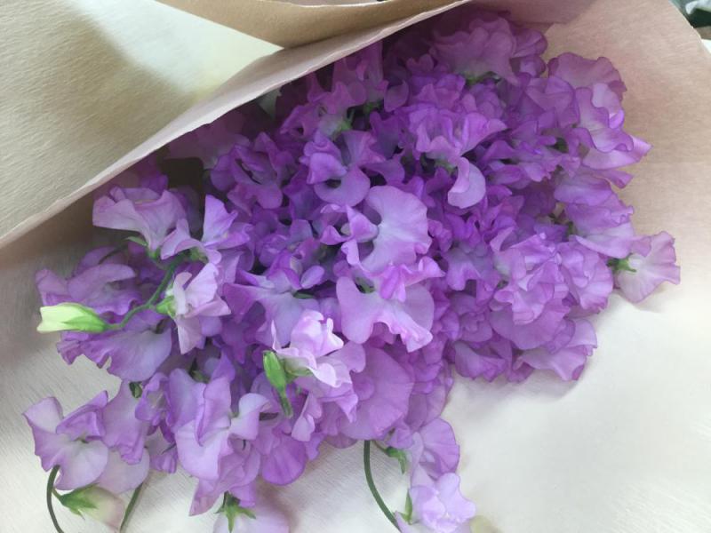 キレイなムラサキ色です♪ペルシャンブルーって名前がついてるスイトピーの花束です★