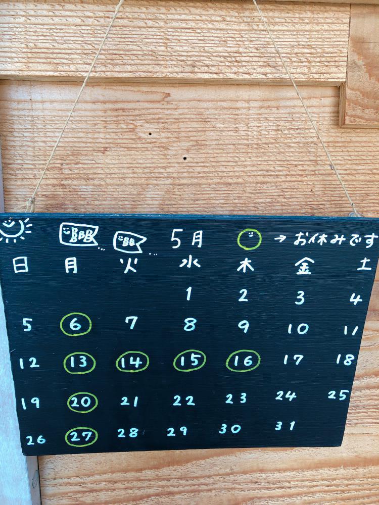 遅くなりました!5月の営業カレンダーです♪今月も、よろしくお願いします!