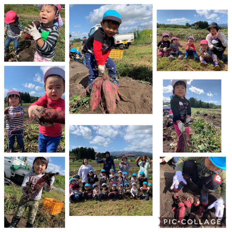 大きなお芋ばかりでびっくりしていた子どもたちでしたが、腰を低くし、「よいしょ!よいしょ!」と、声を出しながら頑張っていました。