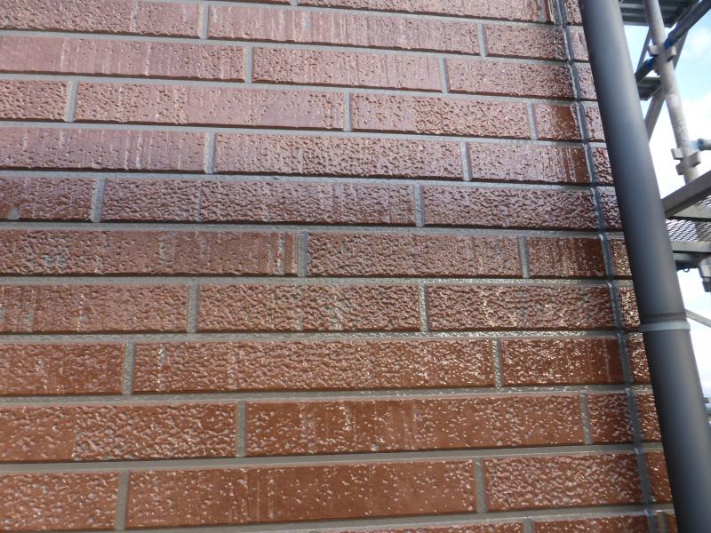 通常の塗装では元々の外壁のイメージ、風合いが消えてしまうので、今回はレンガ調外壁をそのままにUVクリア塗装を行いました。