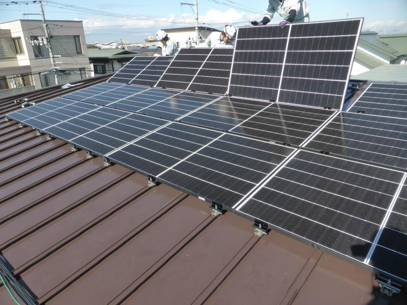昨日と今日の両日、山形市内で太陽光パネルと蓄電池の工事がありました。