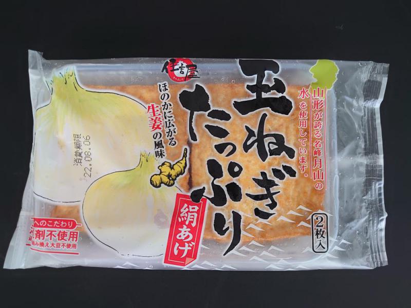 玉ねぎたっぷりがたまらない!絹ごし豆腐に玉ねぎと生姜を加えて、絹揚げにしました。焼いて麺ツユやポン酢をかけても良し、煮物や鍋ものにするとほんのり生姜が香りアクセントになります。そのほかソースをかけてお好み焼き風に、トマトソースをかけてピザ風にとアレンジは自在です◆消泡剤と乳化にがりは使用しておりません。  〈商品名〉 玉ねぎたっぷり絹あげ 〈名称〉   絹あげ 〈原材料〉 大豆(カナダ産、アメリカ産)(分別生産流通管理済み)、玉ねぎ、食油、生姜/豆腐用凝固剤(粗製海水塩化マグネシウム、硫酸カルシウム) 〈内容量〉   2枚入り 〈保存方法〉   要冷蔵(10℃以下)