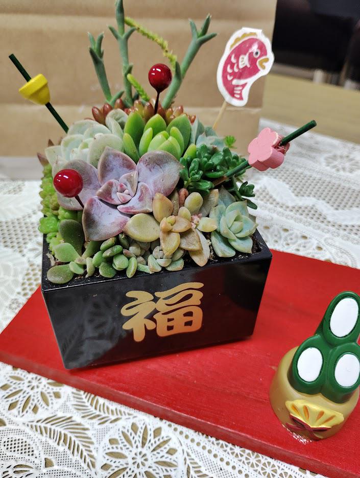 今年1年大変お世話になりました(*'▽'*)来年もどうぞよろしくお願いいたします。12月27日(土)から1月4日(日)まで中川公民館は事務室閉室となります。(貸館業務は12/29-1/3まで停止。)1月5日(月)より通常通りの業務となりますのでご了承ください。※ 写真は、一足お先に新春気分ですが… 川樋の【ガーデン多肉ゆう】(現在冬期休業中)さんの「 正月飾り寄せ植え」です(*‘ω‘ *)ラブリー