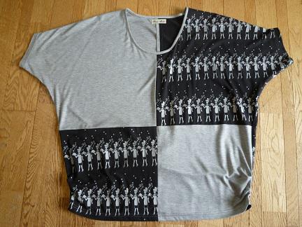 ドルマン袖のたっぷりTシャツです。今年流行のバイカラー(ツートンカラー)で