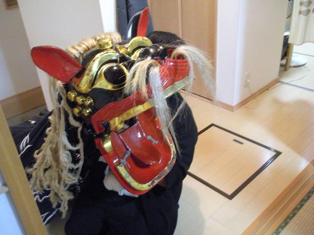 新山神社の昼祭りの日に毎年我が家で休憩します今年も我が家にお獅子さまが来ました。近くで見るとやはり迫力があります!(^^)!少し愛嬌のある感じに見えるのは気のせいでしょうか?明日は夜祭りです。