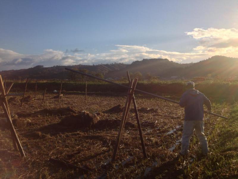来年の作付けに向けて、田んぼの堆肥散布が始まりました。散布は、堆肥センターの人に委託しています。天日干し田の中には、まだ稲杭や藁がいっぱい。乾くのを待って片付けるのですが、雨続きで片付けられず。貴重な晴れは、稲の脱穀や豆収穫していたので。ですが、流石にこの状態では堆肥散布不可能。もしくは強行されれば、藁や杭が堆肥まみれになっちゃいます。今朝は、ダンナとエッホエッホ杭や藁の搬出。雨が染み込んで藁が重い。ものの数十分で、私はすっかりヘロヘロになっちゃいました。一人じゃ出来ないな…誰かと一緒に作業出来るだけで、活力が違う!ホント二人で作業するって、1+1=3だなぁと思いながらの作業でした。