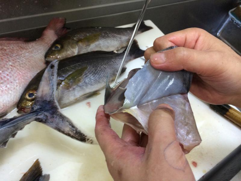 何度見ても、慣れませんが、これは新鮮なお魚を調理しているの証拠です。