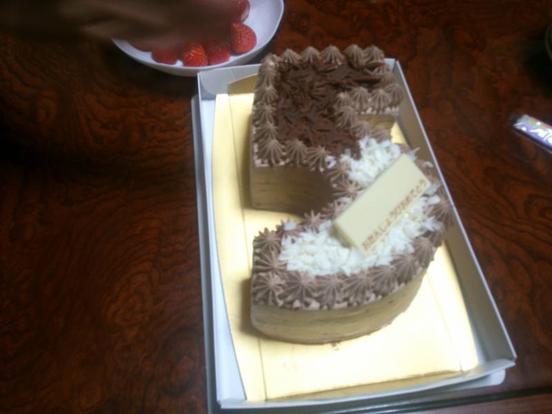 写真のケーキの‘5‘・・・なぜ?と言われました・・。