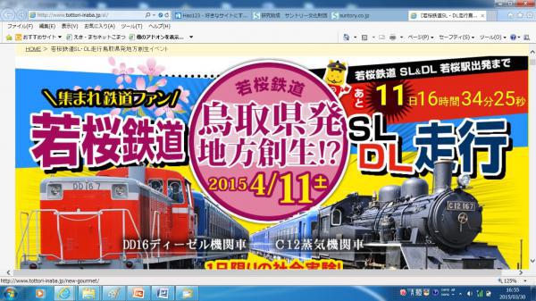 私、江本の友人で、鳥取県若桜鉄道の社長でもある山田和昭さんから、下のようなメールが届きました。鉄道ファン、SLファンのみなさん、是非いってみどごえ〜っ。4月11日にSLを行させて経済効果を試す実験を行います。午前9時30分から正午まで蒸気機関車(C12)、客車(12系)、ディーゼル機関車(DD16)を繋ぎ、若桜駅から八東駅まで1往復させます。各駅でイベントが開催されるほか、日本初の試みとしてSL走行を見学・撮影される方を対象に駐車場・撮影場所を提供し、SL走行の経済効果を検証します。除幕式には石破地方創生大臣がご臨席され、全国の鉄道会社・公募社長と西日本旅客鉄道米子支社長、「鉄道復権」の宇都宮先生、鉄道文化財の米山先生によるトークイベントも開催されます。行政関係者、観光・旅館・供食・商工・駅を守る会など沿線の皆様による「沿線サポート委員会」が準備を進め、駐車場の空き状況をリアルタイム表示するシステムも提供され、商工会のよびかけで40以上の企業団体が当日参加します。また、協賛企業より広告費用をご提供いただき「列車に向って手を振ろう」とテレビ・新聞などで広告しています。当日は沿線の団体や企業の皆様がSLに向って手を振ります。またスーパーやデパート、ガス会社などの広報媒体でも告知をして頂いていします。県外では全国の三セク鉄道各社、私鉄各社、JR各社、鉄道関係の博物館の皆様、鉄道関連店舗に広報のご協力をいただきました。皆様の応援、本当に嬉しく御礼申し上げます。枕木の交換も無事終了し、踏切開閉のリハーサル、SLやDLの点検と鉄道側の準備も進んでいます。若桜鉄道のSL走行には多数の方々のご参加が望まれます。ぜひお誘い合わせの上、おこしください。また、引き続き江本 様からもこの件を広めていただけますと幸いです。