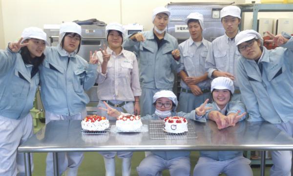 クリスマスも近いし、間もなく課題研究も終わるってことで、ケーキ作りをやりました。テーマは、フルーツケーキの自信作。スポンジは購入しましたが、クリーム作りからデコレーションまで、真剣に取り組んだ成果が、これ!記念撮影の後、みんなで食べましたが、いずれも「んまい!!!」プロ顔負けのケーキになっていました。