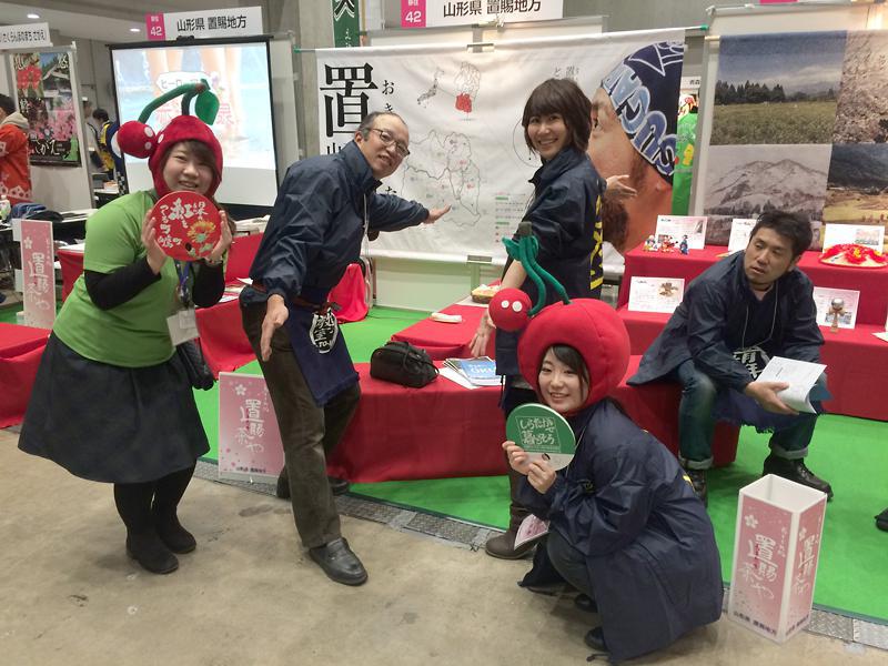 東京ビッグサイト「JOIN移住・交流&地域おこしフェア」楽しんできました!我が山形県置賜地方ブースは茶屋仕立て。まずは、お茶でもお気軽にと立ち寄っていただき、私たち移住実践者が世間話をしながら相談に乗るスタイル。後ろのパネルがgoodでしょ♪山形県って、人の横顔のような形なのです。隣町 米沢市の同じく農業者ちば吉くんの横顔をドーンと1.2mのパネルに!髭の部分が置賜地方なのです(笑)右のパネルは、「おきたま」→「OKITAMA」→「OK!TAMA」う〜んナイスアイディア!!移住希望の方だけでなく色々な方とお話できて、貴重な時間でした。山形県民の憧れの的、さくらんぼ被り物もバッチリかぶってきました何よりありがたかったのが、先月 都内で「かわにし 豆の展示会」を開催した時にお会いしたご家族との再会。先月お会いした際、移住先を探していらっしゃるとのお話になって、今日のイベントをお伝えしていたのです。そこで、私に会えたらと来て下さったとのこと!!嬉しい〜〜!!!それから、不定期にお送りしているメールマガジン「浦田農園通信メール」を見て、私たち夫婦の上京を知り、会いに来て下さったお客様。嬉しかった〜〜!!友人も数名、会いに来てくれて今日も感謝の一日でした。ありがとうございました?イベントは今日一日で終了。だけれど今後もfacebookを通じて当地の魅力を伝え続けることで、興味を持っていただける方を増やしていきたいな。*-*-*-*-*-*-*-*-*-*-四季美しい山形県置賜地方川西町で農業してます!浦田農園http://noukaurata.com/