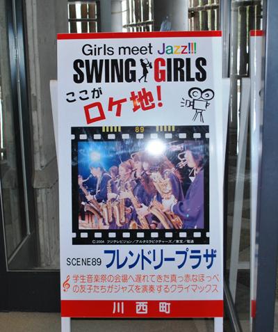 今日と明日28日(日)春待ち市があります。田舎きて始めてみました!聞きました!おいしいもの、たのしいもの、かわいいものあり、そして音楽ありでした。   スイングガールのラストシーンは、ここフレンドリープラザで行われた。田舎の落ちこぼれ女子高校生がおりなす青春映画、ビッグバンドを組んで、ジャズを演奏する「ジャズやるべ!」ロケは山形県置賜地方を中心に行われ、セリフも山形弁(置賜弁)丸出し、上野樹里さん、貫地谷 しほりさん、平岡 祐太さんとそうそうたるメンバー、それと同じ譜面で同じ曲、貫地谷しほりさんの指導もした方も加わり、 地元の『おれまかJAZZオーケストラ』が演奏、地元川西の亥の子屋さんの主人も出ているということで聞いてたら、ソロあり、かっこいいーー! 会場もこのとき一番人が多かったです、映画のラストシーンを思い起こす。映画も何回も観ているから懐かしい感じでいい気分に浸れました。