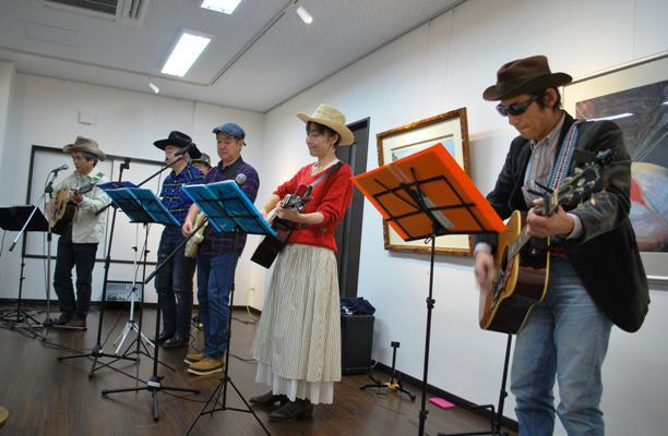 昨日米沢アートステーションで地元米沢のカントリーバンドのジャンバラヤズさんコンサート、18時半から演奏開始で2時間25曲歌いっぱなし、昨年も頻繁にあちこち出ています。今年は昨日が初、22日はカフェハウス・パウゼ(米沢西駅五叉路)です、メンバー全員そろうというのはまず無いですね、新メンバー小学女子も仲間に加わったようで平均年齢下げたようですが、主なメンバーはほぼ同年代、フォーク世代、ビートルズ好きという世代なのです、カントリー・ブルーグラスメイン、服装もカントリー風・・アンティーク服に身を包むこだわり感がいいですね。しかし衣装替えもあるとは驚きでございました、サングラスにハット、”イーストウッド”風?チョイ悪親父、ギターがギブソンでしたね気になります、それと次回出るという小学女子がすごく気になる!
