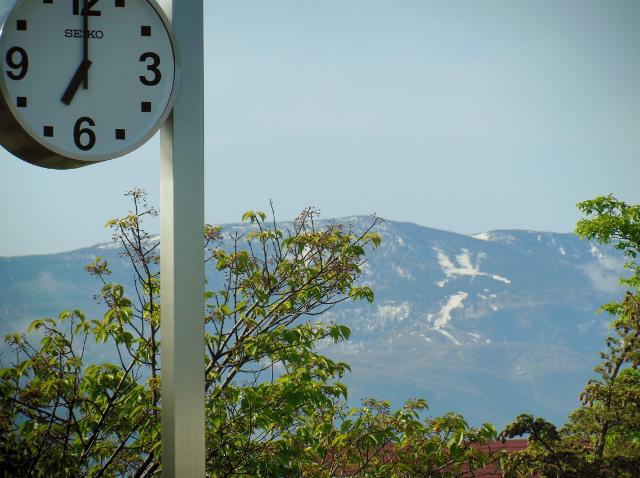 上杉神社伝国の杜からみた天元台、白馬の騎士はまだ健在です、2番目のシャクナゲリフトのこぶバーンはようやく土が見え始めました、下のしらかばリフトはわずかに残雪を残すのみ、天元台こしあぶらはあと一週間後くらいかな、高原駅標高1350mさすがに高原、風が冷たくすがすがしいです。