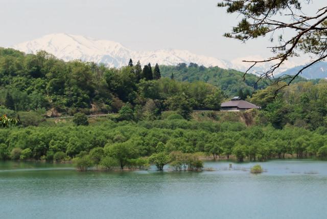 今朝久しぶりに”源流の森”に行ってきました、新緑が進み雪解け水をいっぱい貯めた白川湖の水没林そしてその水の源となる飯豊山とても綺麗です。雪の残る飯豊山と水量たっぷりの白川湖・・エメラルドグリーンでいまが一番きれいです、雪が消え始めると白川湖の水量もなくなり、山も霞んできます。