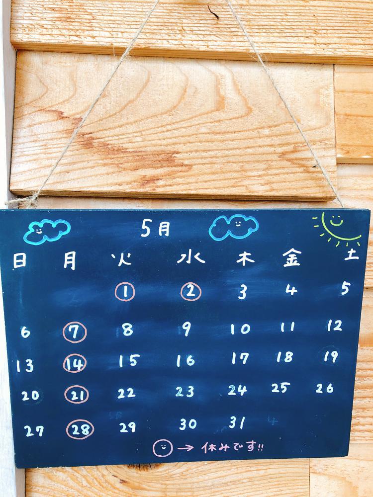 5月のお休みのお知らせです!1・2日は臨時休業となっております。定休日は月曜日です。今月も元気に頑張ります!よろしくお願いします♪