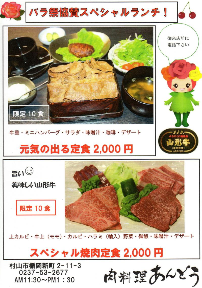 ●バラ祭協賛スペシャルランチ 肉料理あんどう