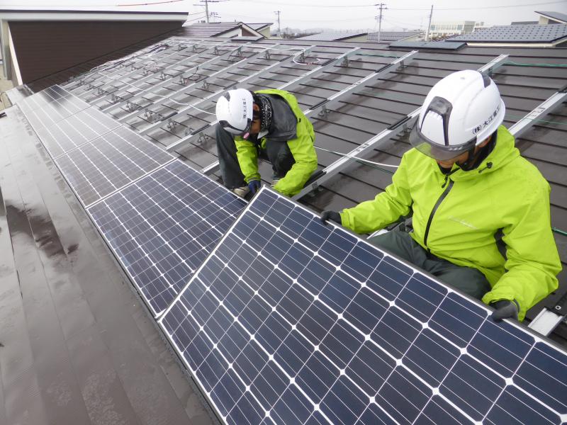 雨が降ったり止んだりの天候で、一瞬の晴れ間に作業を行いながらも、いつも以上に早いペースでパネル設置まで完了することができました。