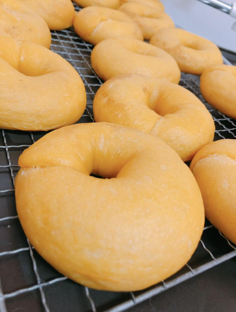 今年も人気のかぼちゃベーグルを秋冬限定で販売中です♪優しい甘さでもちもち食感!ぜひお試しください!かぼちゃベーグル 230円(税込)