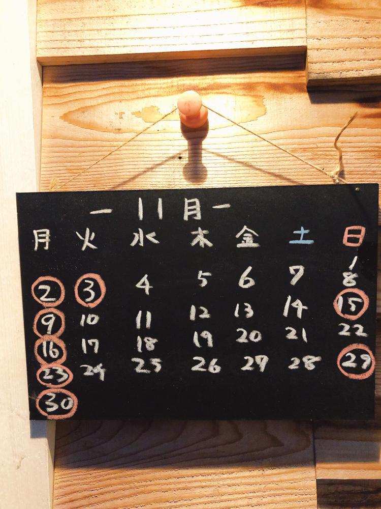 11月のカレンダー更新いたします!都合により、臨時休業を何日かいただきます??♂?今月もよろしくお願いいたします!