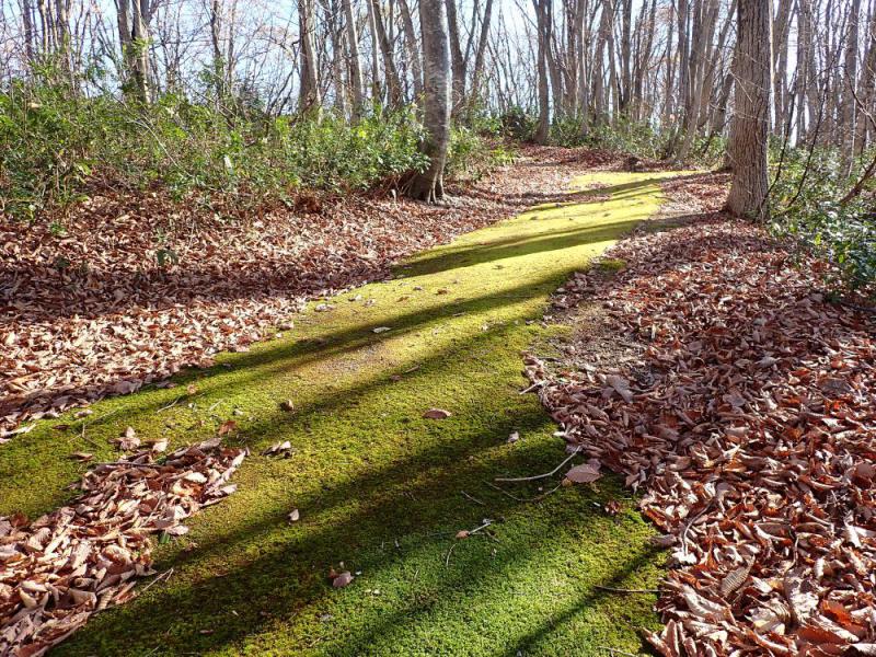 公園に見事な苔の道が出来ました、しぜんこうえんの特権でもあります。人間が救ったら最後まで人間の手での管理が必要です。
