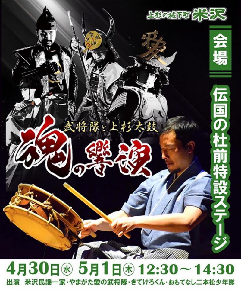 ●米沢上杉まつり「 武将隊と上杉太鼓 魂の響演」4/30・5/1開催!