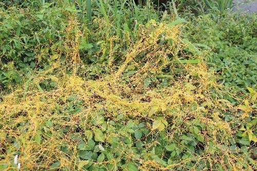 ●今年も「ネナシカズラ」を散歩の途中にみつけました。黄色のラーメンが網の目のように道ばたの雑草に絡みついていました 「ネナシカズラ」はつる性の寄生植物で葉緑素がなく黄色などの色がついているのだそうです 一本引き抜いてみました 種子が地中や地表で発芽し、初めは根があるのですがつるが伸びると寄生主に巻き付き寄生根をだして茎に根付いているのがわかりました 写真をアップしていますが雑草から茎が伸びているのがわかりますか 初めて見た時の驚きは今も覚えています