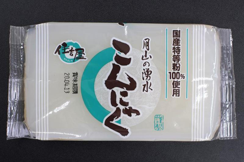 国産原料と月山の名水でつくった歯ごたえのある弾力が特徴のこんにゃくです。〈商品名〉 平こんにゃく〈内容量〉 250g