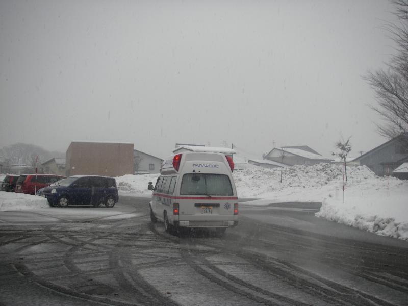 昼夜を問わず 吹雪の中を飛ぶような速さで活動する救急隊