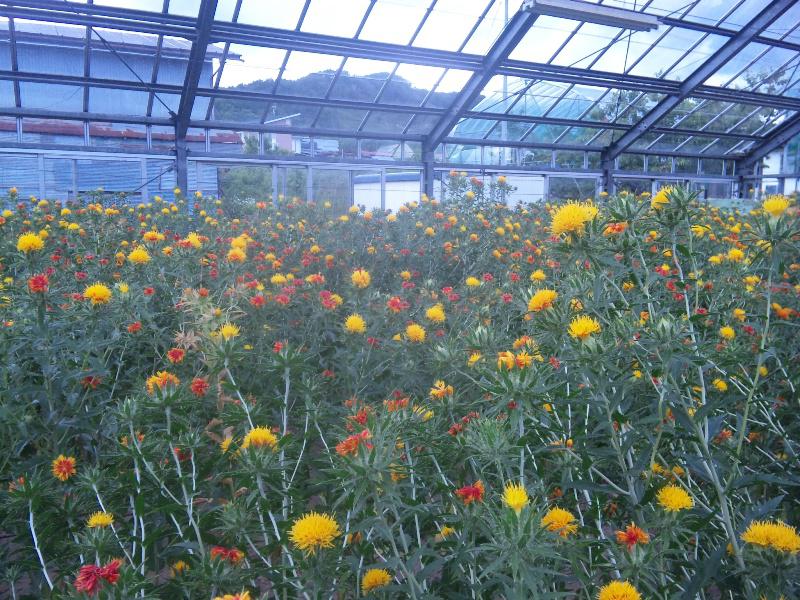 ●ハウスの紅花満開!紅色!at山形県河北町紅花資料館