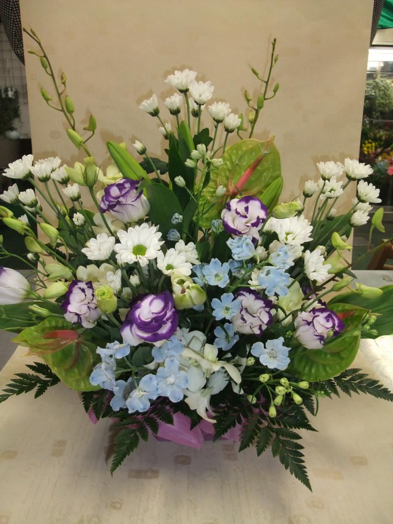 デルフィニューム、トルコキキョウ、オリエンタルリリーです