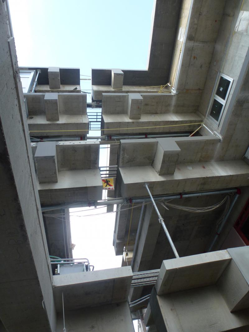 建物を切り離し、偏心率{建物の硬さの中心(剛心)と重量の中心(重心)の関係}の値を良くして、耐震強度を上げる構法です。