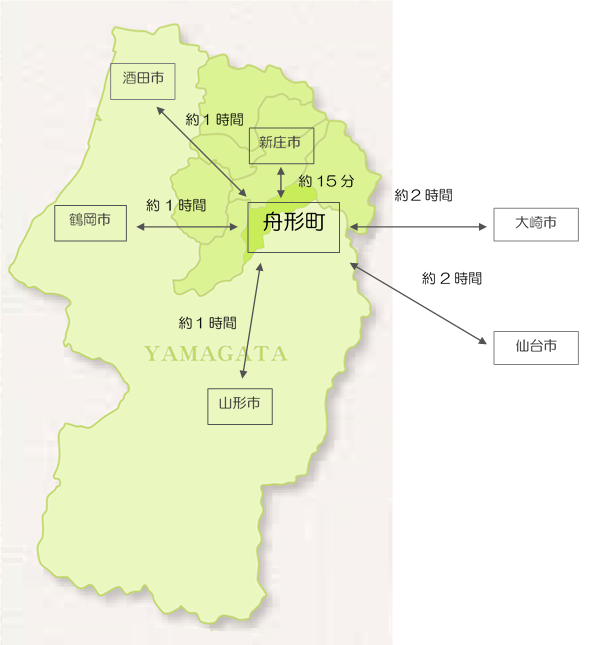 おはよさんですぅ〜予報されていた雪も降らず穏やかな朝ですね(´・ω・`)そろそろ『ばっけ』の芽も顔を出す頃でしょうか? さて結婚サポートセンターのアクセスを見ていると最上郡内のアクセスの他に、県内及び県外からのアクセスもなかなかあるもので方言を使ってもいいのかなぁ〜なんて思いながらも、適度に使えばいいべ!と思う私であります笑 そんな郡外の方々に質問です! 舟形町がどこにあるかご存知ですか? まずは近いところから攻めてみましょう!! ・新庄まで約15分・尾花沢まで約15分 近隣の市までは約15分です!!わかりやすい!! ・山形市まで約1時間・酒田市まで約1時間・鶴岡市まで約1時間 おでかけエリアまで約1時間です!!わかりやすい!! ・大崎市(宮城)まで約2時間・仙台市(宮城)まで約2時間・湯沢市(秋田)まで約2時間 隣県のおでかけエリアまで約2時間です!!わかりやすい!! やんばいな位置にあるのが”舟形町”です(●´ω`●) 是非山遊び、川遊び、温泉入りさ来てけろなぁ〜♪※交通手段は”車”です。