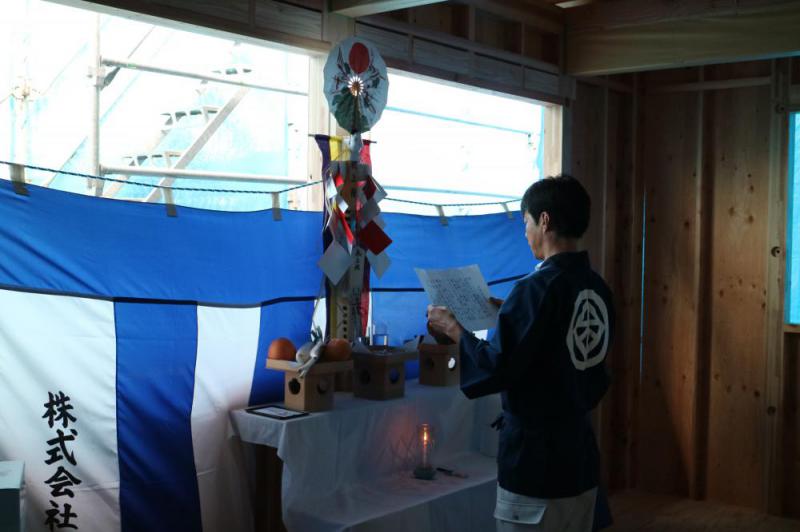 無事に棟木も上がり、本日めでたくW様の上棟式を迎える事ができました。式も滞りなく進み、最後に参加者全員で乾杯をいたしました。まだまだ残暑が厳しく、暑い日もありますが、体調管理には十分気をつけて工事を進めてまいります。