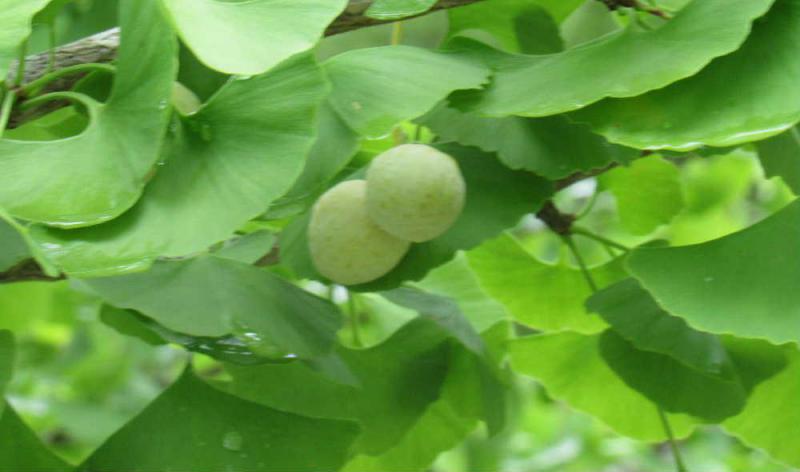 ●暑さに負けずイチョウの実「ギンナン」が成っていました イチョウは活きた化石といわれるほど古くから存在する木です 雄株と雌株があり、雌株にだけ実がなり その実である「ギンナン」は和食の大切な食材の一つです まだまだ青いのですが熟れて実が落ちると強いにおいがするために扱いにくい食材です