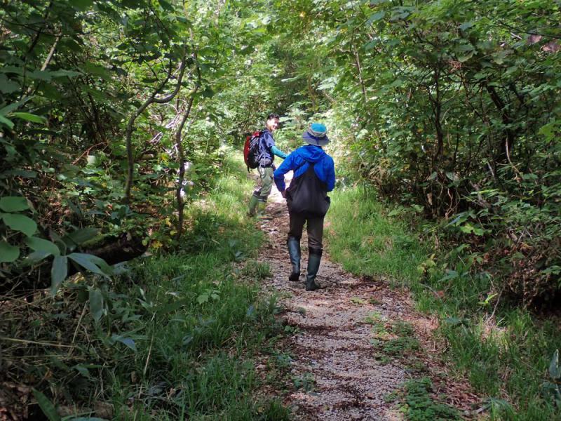 踏み固められた固い道と緑のトンネルは閑散として心地良い。