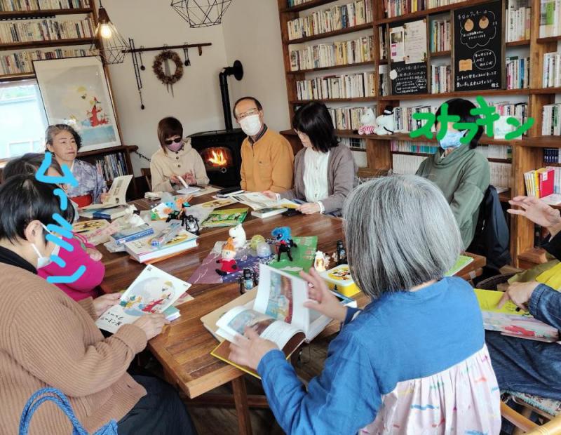 中川公民館で講師をお願いした(している)お二方が主催する「ムーミン読書会」の様子。朗読家で絵本キュレーターの金子聡子さんと、ムーミンとひょうたん愛好家である石黒百合子さんです!(あれ?中川の地区長もいらっしゃいますね…( *´艸`)金子さんには、先日の文化祭の民話語りで、石黒さんには12月の第4回はつらつ学級でお世話になっています。12月2日(火)開催の「はつらつ学級」は、石黒さんにひょうたんランプづくりを教えていただきます。(初心者コースなので、安心してご参加ください(^^)!)ひょうたんランプ、ひょうたん工芸以外にも、羊毛フェルトから、洋裁、手芸まで何でもこなす多彩な先生です。(今回のお洋服も自作とのこと!!)今後も石黒先生、金子先生お二方にはぜひ中川でいろいろと教えていただきたいです(^^♪