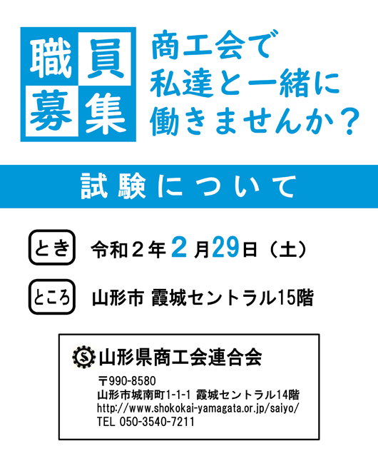 「経営支援員」として県商工会連合会又は県内24商工会に勤務するための資格認定を得る試験を実施します。