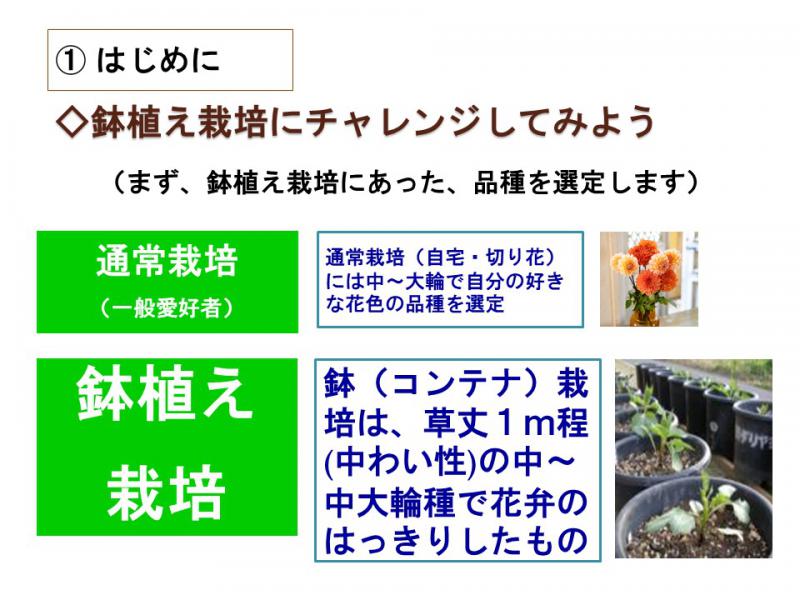 2)草丈・高性は避けましょう。(開花時の管理、移動が大変になります。なお、枝数を増やせば草丈が多少は抑制されます)
