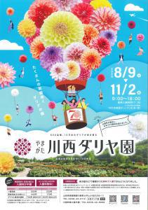 「やまがた川西ダリヤ園」今年も開園の時期となりました!川西町 商工観光課----------------------------------------------- 8月9日から11月2日まで、今年もやまがた川西ダリヤ園が開園いたします。 やまがた川西ダリヤ園は、国内でも有数のダリア鑑賞のための公園です。 施設の名前の「ダリヤ」については昭和初期に川西町ではじめて栽培された当時の表記であり、町のダリアの伝統を引き継ぎ、現在も使用しています。 川西ダリヤ園は、昭和35年に現在の地から少し離れた場所に50アールに満たない面積からスタートしました。以降、平成12年にリニューアルし、現在は4ヘクタールの敷地面積に650品種、10万本ものダリアを植栽し、シーズンには例年5万人前後の来園者を迎える本町の中心的観光施設となっています。 ダリアは、花の色、形、大きさが多種多様であり花の直径が20pにもなる「巨大輪」は大変見ごたえがあり、ダリヤ園でも多くの巨大輪系の品種を栽培しています。 その豪華で存在感ある花型は各種メディアでとりあげられ、イベントやお祝いの席等様々なシーンを一層盛り立てる花として人気を博しています。 花の見ごろは朝晩が涼しくなる9月下旬ごろです。この時期となると、開花数は一気に増え、花の色もより深みが増し、花の形もシャープな造形美をたたえたものへと変化していきます。 ここ数年、気温の高温化、集中豪雨等のためダリアの生育環境は本当に厳しくなってきていますが、それら苦難を乗り越え素晴らしい花を咲かせるダリアの花は見る人により深い感動を与え、多くの人々に元気や癒しを届けています。 皆様のご来園を心からお待ち申し上げております。 ▼やまがた川西ダリヤ園https://www.town.kawanishi.yamagata.jp/dariya/